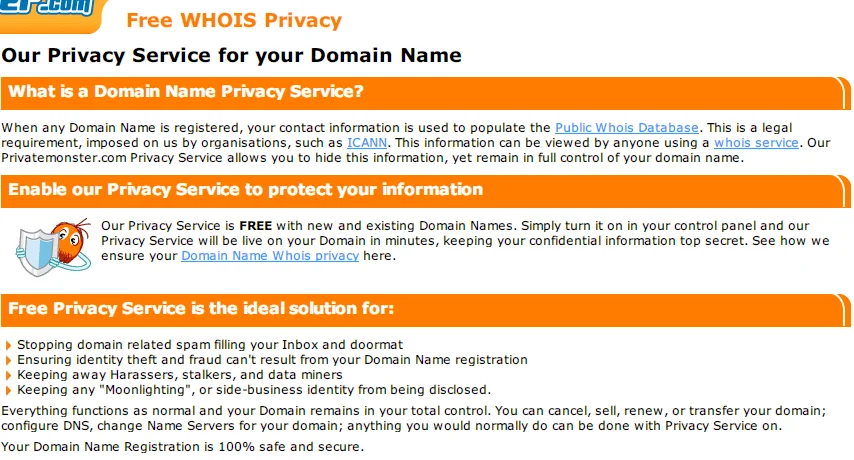 最后再说说域名怪兽,就是 Domainmonster.com 了,英国服务商(所以 .im 才会那么便宜吧...)。在这家能注册的后缀非常多,有多少我就不数了。而且提供多种 Domain Services,其中最值的是免费的隐私保护,无论是新老域名。
