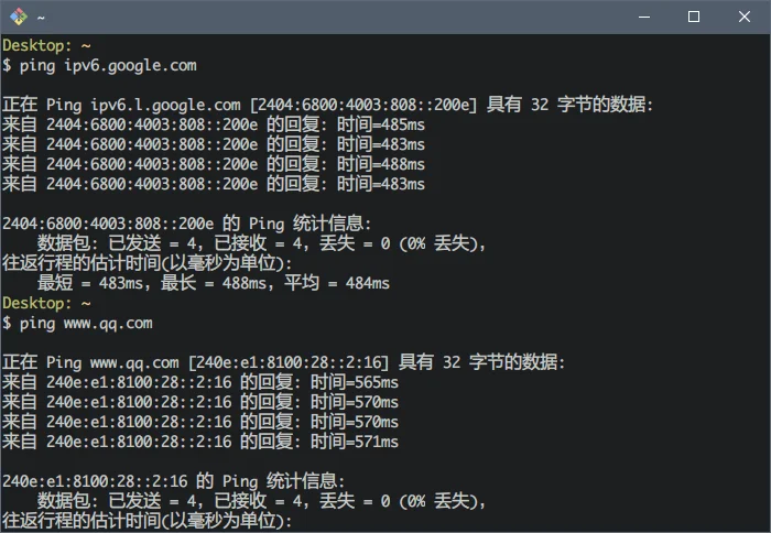 接着在防火墙设置页中,确保防火墙区域跟 wan 的相同。最后保存应用,到此配置就完成了。剩下的就是测试了。看下网卡能否正常获得 IPv6 地址,到 http://ipv6-test.com/ 检查一下 IPv6 状态。访问 https://ipv6.google.com/ 试试,可用!聊胜于无,哈~