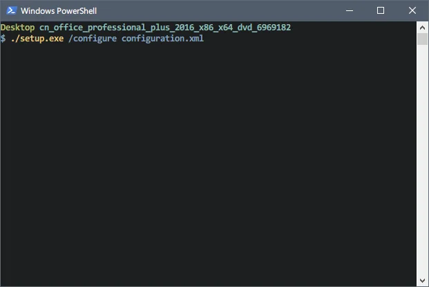 ./setup.exe /configure configuration.xml 并执行。